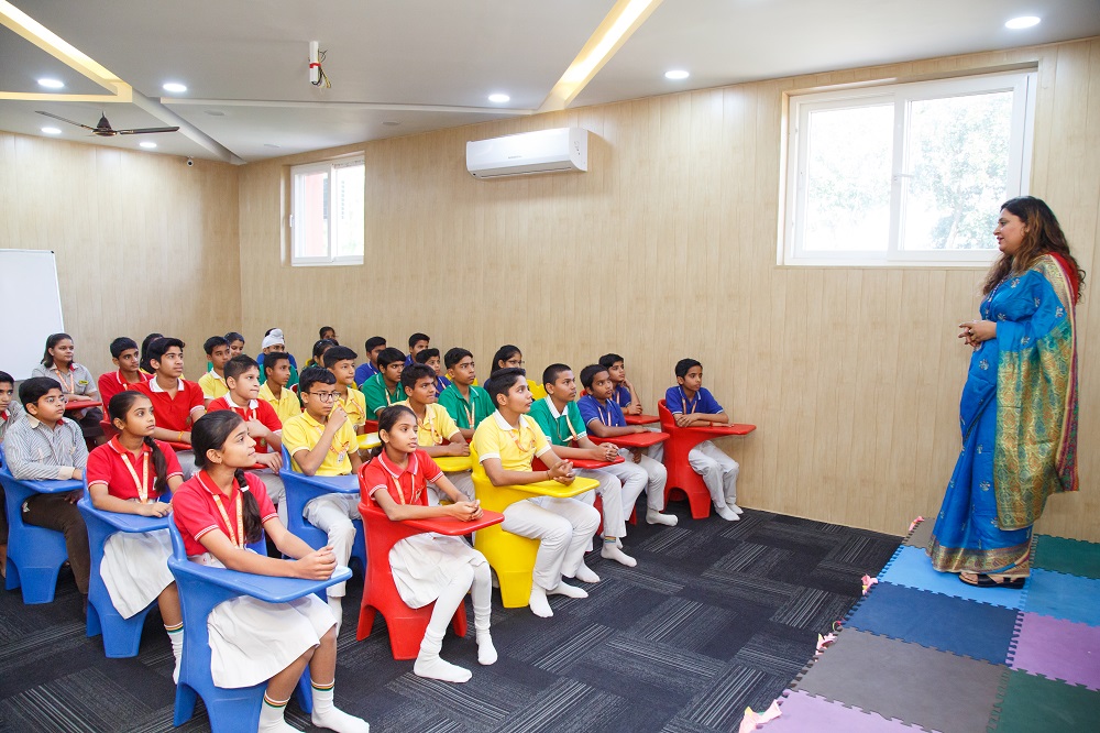 The aim of the school is to help the child for harmonious development and to explore the talents and prowess of his/her personal nature to provide ample opportunity to sublimate his/her instincts to create favourable conditions for the free expressions of his/her ideas or interests and to provide environment favourable for all round development of the child.