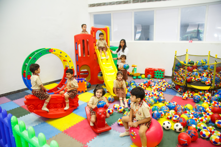 - Separate play areas for Pre-nursery, Pre-primary and Primary sections within the school to provide compatibility. A sprawling indoor all-weather sports area within the building housing indoor games.